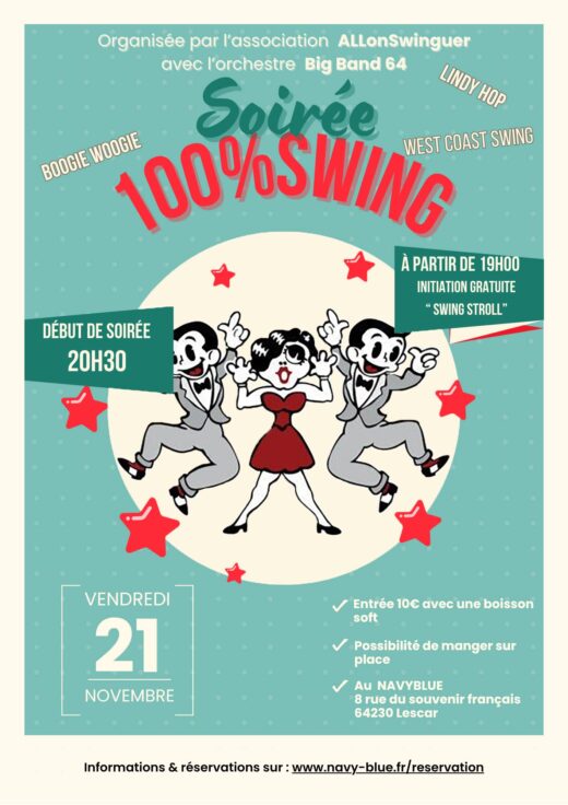 Jusqu’à 1h30, laissez-vous emporter par la magie du swing, les rires et les rencontres d’une soirée où tout le monde finit par danser.